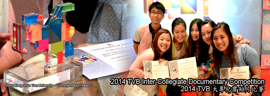 大學校園 2014 TVB 大專紀實短片比賽 August 6, 201401602 2014 TVB Inter-Collegiate Documentary Competition 2014 TVB 大專紀實短片比賽 所有作品將安排於九月二十一及二十八日,晚上七時至八時於翡翠台播出。 Hong Kong Shue Yan University – ” Commendation Award “ Related Related tags : Inter-Collegiate Documentary Competition大專紀實短片比賽 消失吧,討厭的行業 Previous Post 中國政府防竊密 罷買蘋果產品 Next Post