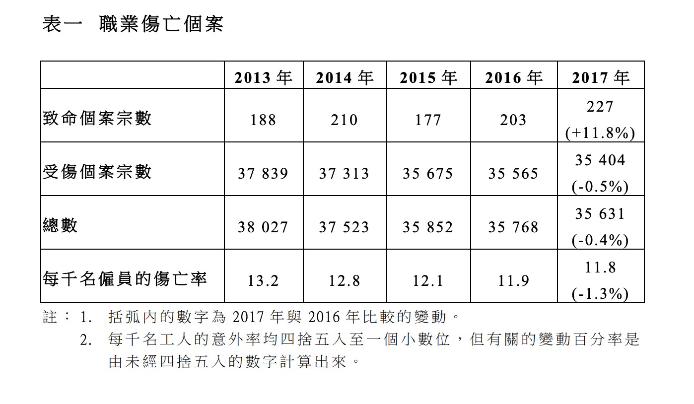 職安局一直以嚟,只著重於門面工夫,雖則這是政府部門的通病。但由圖下表見,傷亡問題有多無少。問題是,即使加強教育,亦無任何幫助,原因在於,監控措施大大不足。