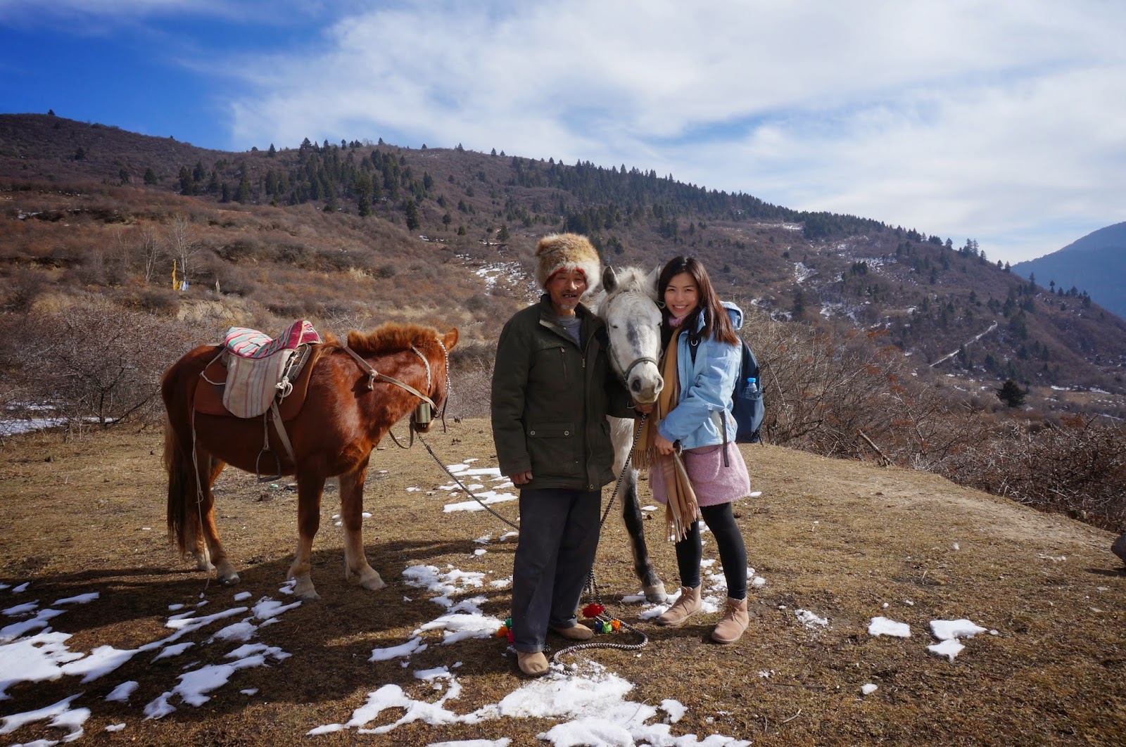 Riding hairy horse up to the hill (RMB 80 for an hour in winter) and got lost in the forest