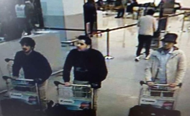 比利時警方藉由監視錄影器畫面公布疑犯照片,鎖定了3名疑犯,畫面顯示他們在機場推着 ...