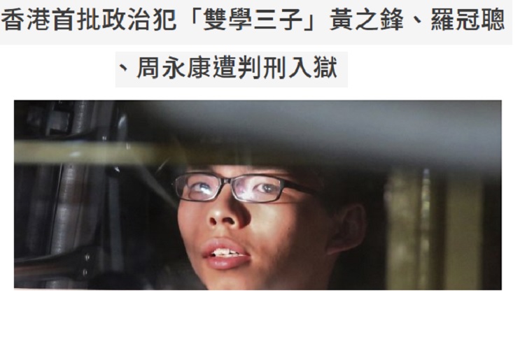 雙學三子遭上訴庭判監,引起台灣政界高度迴響。有媒體甚麼指黃之鋒等3人為「首批政治 ...