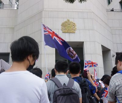 大批市民在星期日 (1日) 去英國領事館,促請批准英國國民海外護照 (BNO) ...