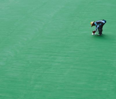 維園足球場的油漆工程。 攝影:黃錦瑜 (2020年5月) ...