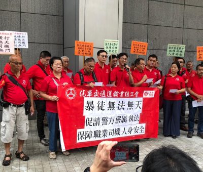 汽車交通運輸業總工會今日到警察總部請願,要求警方執法緝拿暴徒。 工會成員 ...
