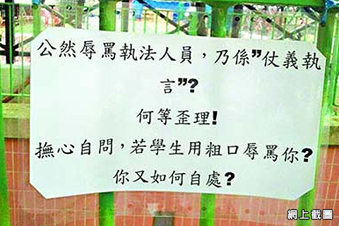 7月31日早上,林慧思任教的寶血會培靈學校校門外,出現了多張橫額掛在欄桿上,上面 ...