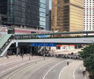 示威者陸續離開入境事務大樓前往金鐘政府合署