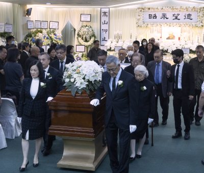 香港樹仁大學創校校監胡鴻烈出殯,多位政界及教育界人士扶靈,包括仁大校董會主席丁 ...