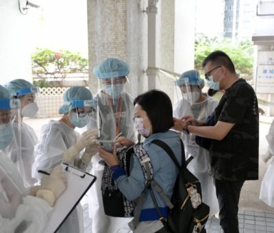 政府早前宣布食肆及表列處所員工需要每兩周檢測新冠病毒一次。在荃灣沙咀道流動採樣 ...