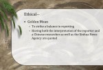 | Golden Mean- To strike a balance in reporting – Having both the interpretation of the reporter and a Chinese researcher as well as the Xinhua News Agency are quoted |