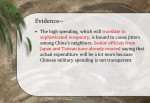 “The high spending…is bound to cause jitters(緊張) among China’s neighbors”