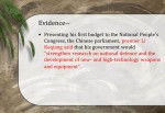 a. Subjective words“ Chinese government experts were busy defending the high spending. “In order to protect the country and safeguard regional peace and stability…” Chen Zhou (a member of the NPC) ”