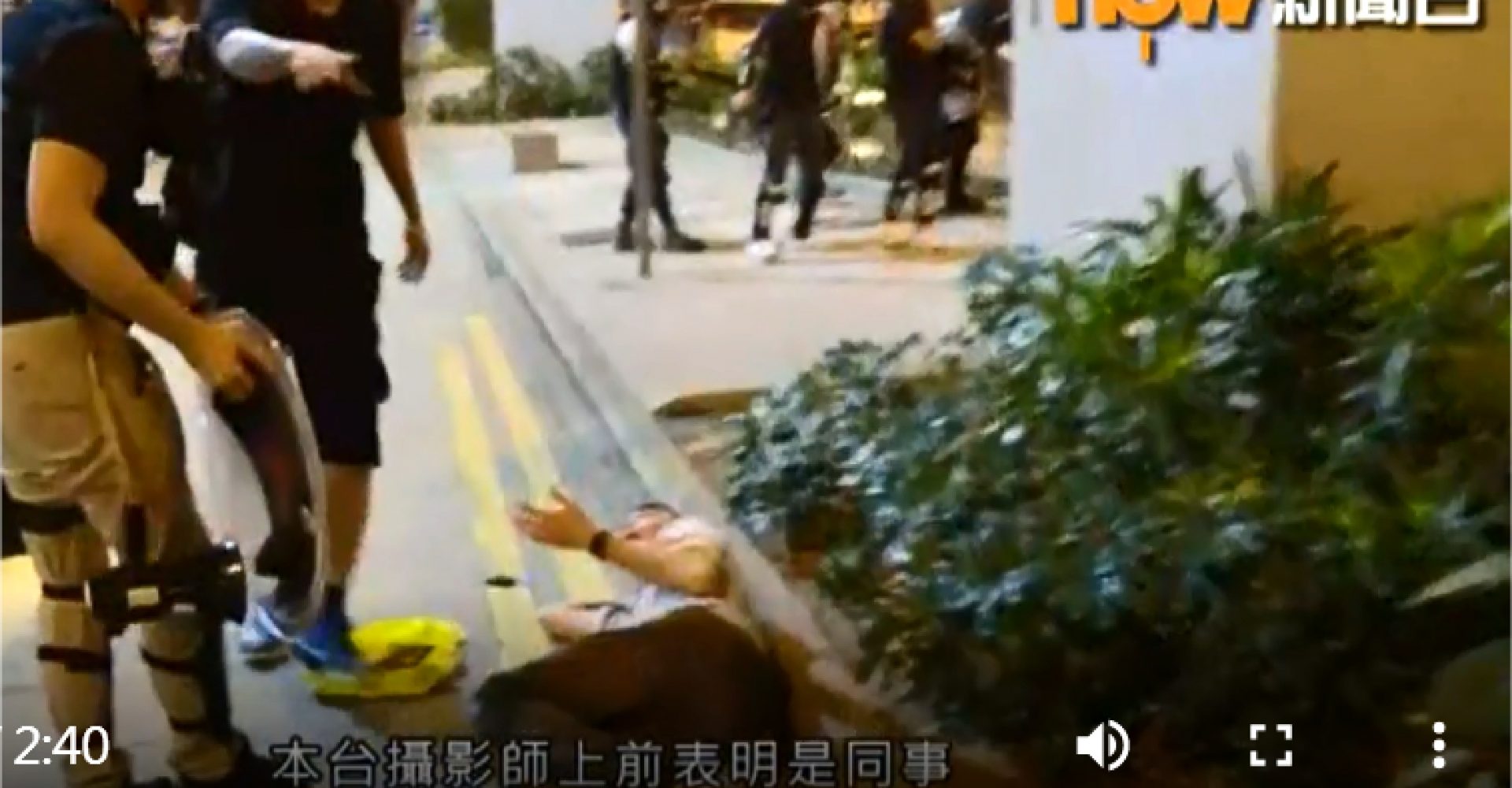 Now新聞台表示,昨日凌晨1時許,該台一名外判司機前往停泊在旺角警署外的採訪車,準備取車時,懷疑被警方發射的布袋彈擊中頭部倒地。他手上持有印有該台標記的反光背光和車匙,跌在地上。防暴警察之後走近司機,該台攝影師上前表明倒地者是他同事,但被數名防暴警察以長盾驅趕,有警察舉起胡椒噴劑。