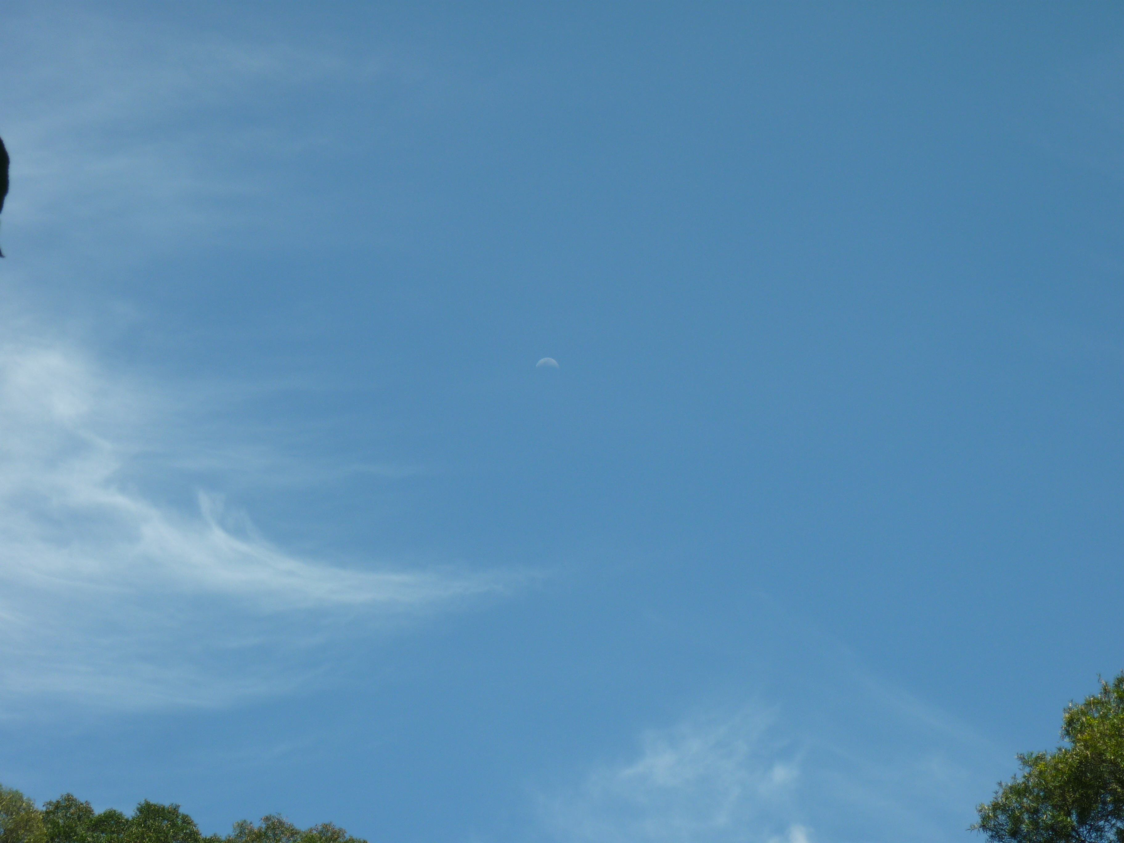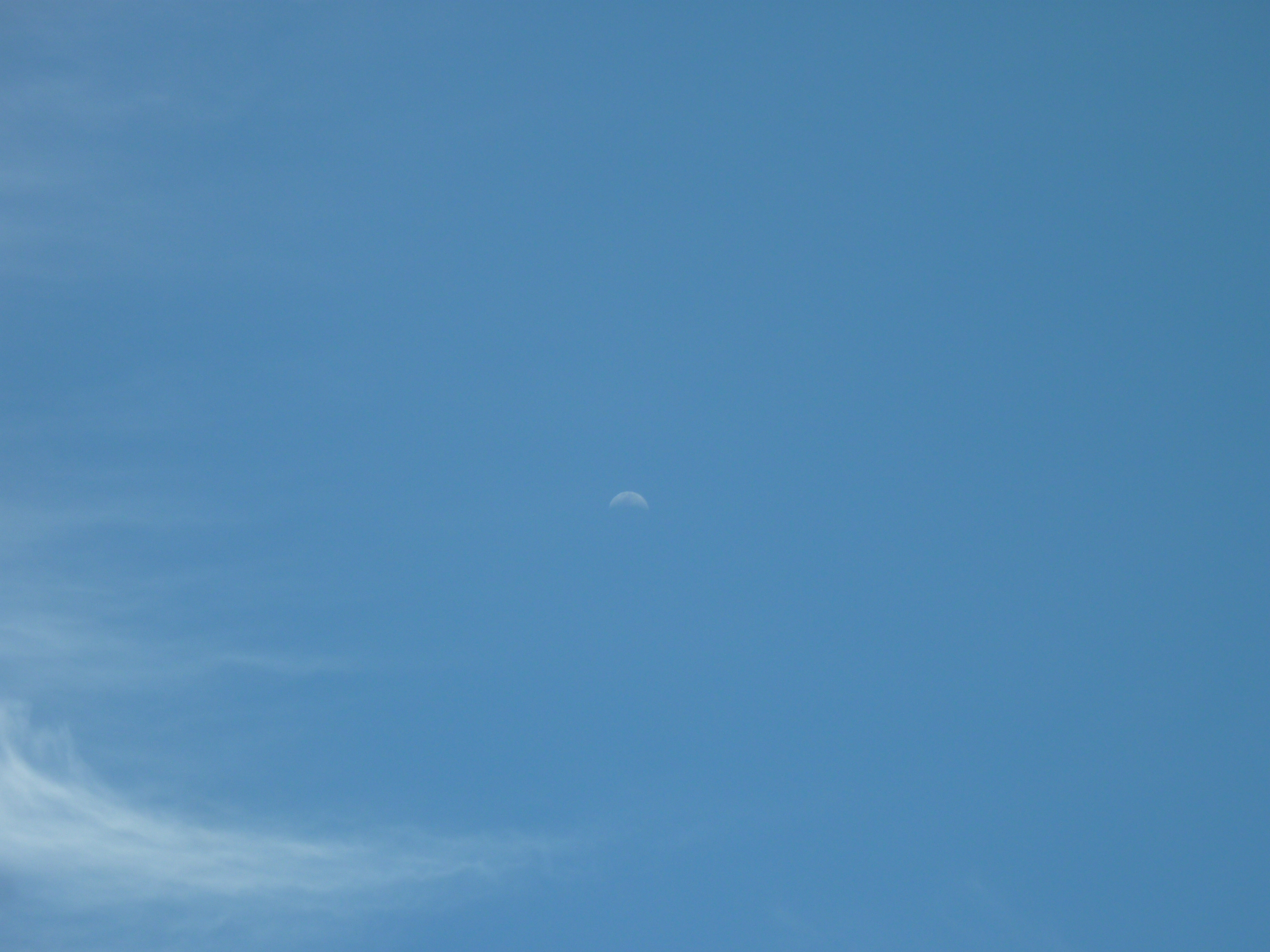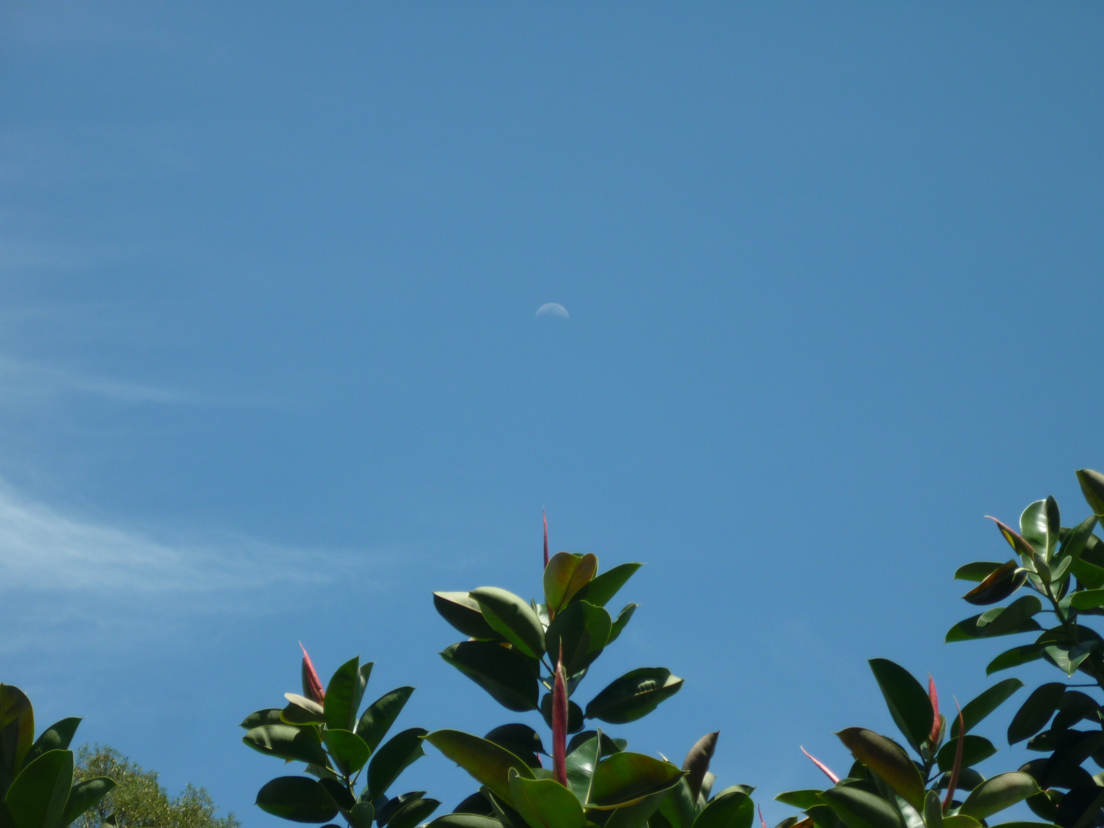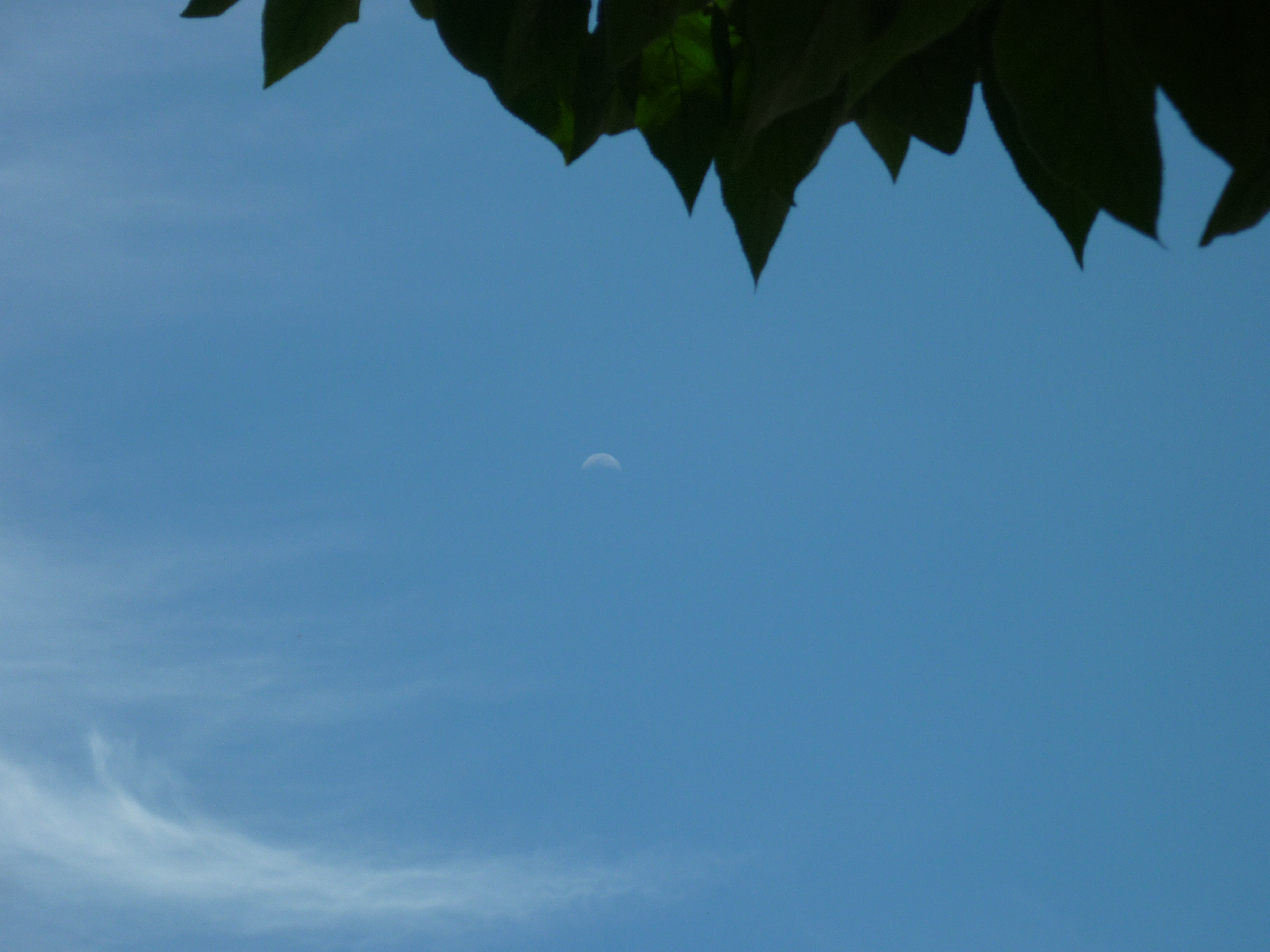 「咦?是月亮!爸爸你看!是月亮姐姐!她出來是為了和太陽伯伯玩耍嗎?」