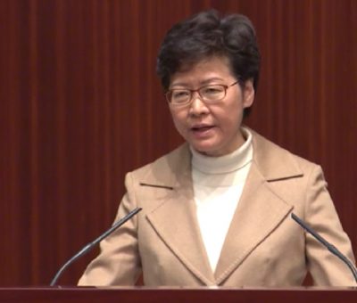 林鄭月娥10:43進入立法會議事廳時,全體議員及職員起立,期間有非建制派議員叫喊 ...