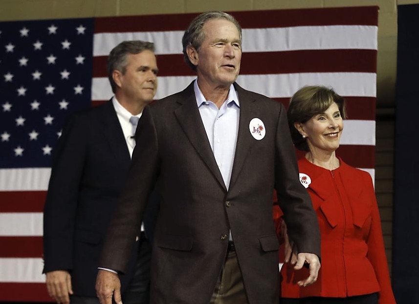 美國前總統喬治·布殊卸任7年來,首次出席競選活動,為他的弟弟、共和黨總統參選人傑 ...