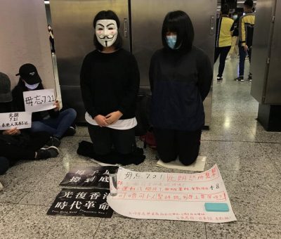 有市民在銅鑼灣港鐵站發起靜坐行動,在售票機及增值機貼文宣,呼籲公眾毋忘去年7月 ...