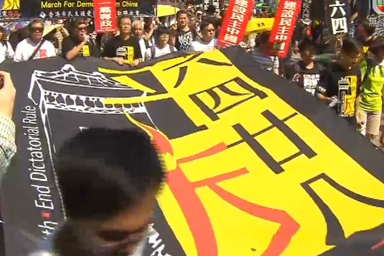 支聯會按照紀念六四傳統,下午舉行「愛國民主大遊行」。遊行隊伍從灣仔修頓球場出發, ...
