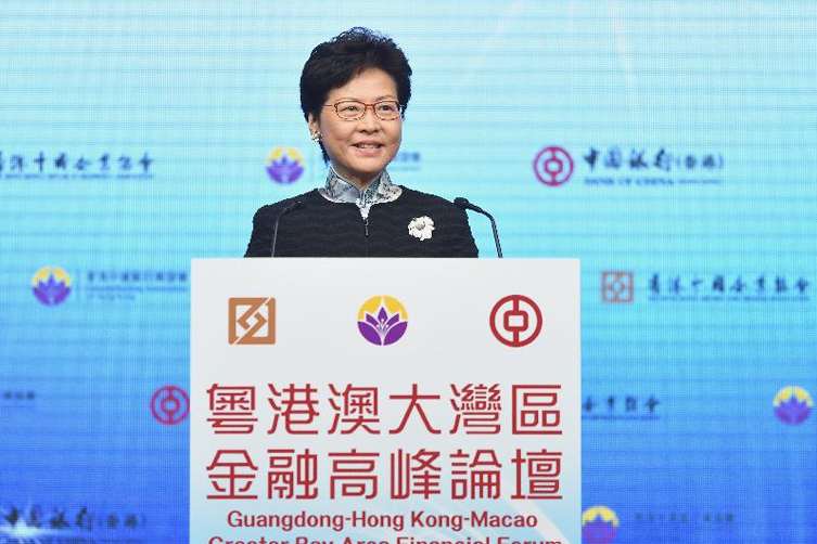 行政長官林鄭月娥出席粵港澳大灣區金融高峰論壇致辭,指大灣區雖在一國之內,但存在兩 ...