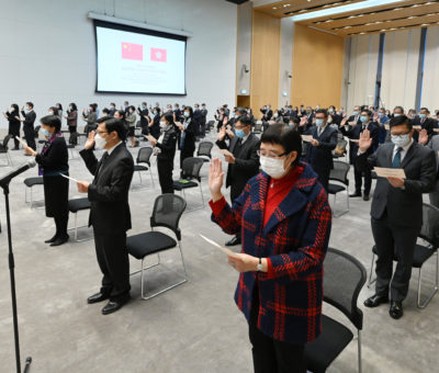 政府總部再舉行公務員宣誓儀式,由公務員事務局常任秘書長楊何蓓茵帶領常任秘書長、 ...