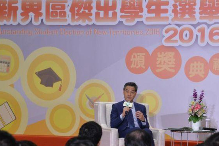 特首梁振英出席新界青年聯會舉辦的新界區傑出學生選舉頒獎典禮,期間有學生問到收回石 ...