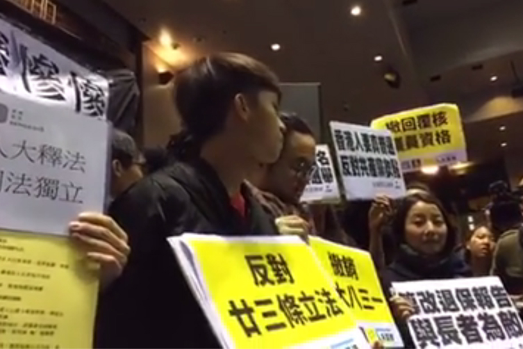 香港眾志及社民連成員今聯同立法會議員梁國雄,到禮賓府示威,要求政府立即撤回對4名 ...