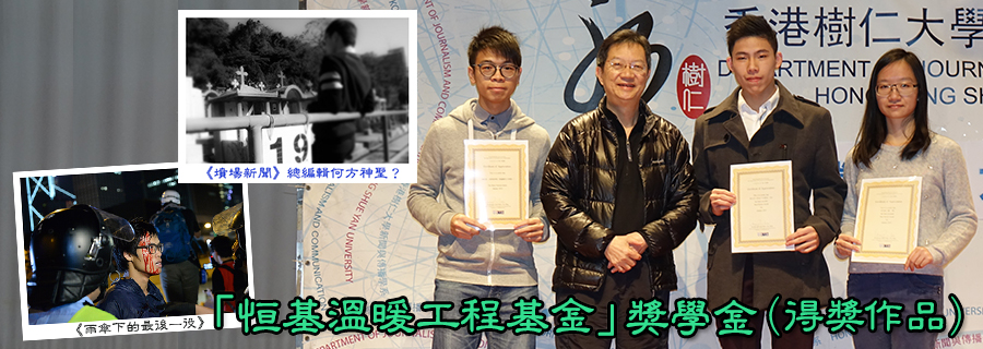 January 20, 201503396 第三屆「恒基溫暖工程基金」獎學金徵稿比賽(得獎作品) 第三屆「恒基溫暖工程基金」獎學金徵稿比賽結果已於1月20日(周二)在樹仁大學新傳 ... Read More