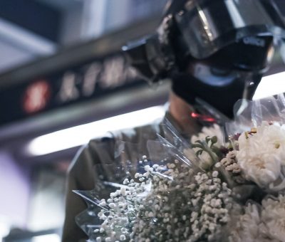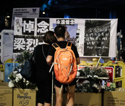 屯門公園入口設有悼念梁凌杰的街站,過百名身穿黑衣的市民聚集並獻花致意,期間曾高 ...
