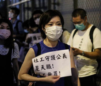 香港社會工作者總工會(社總)於荔枝角收押所外舉辦「流水式集會」,聲援早前因阻差 ...