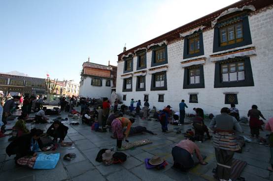 逛完大昭寺,我們來到了圍繞着大昭寺的八廓街,作為熱切的藏乘佛教徒,大叔仔細地不放 ...