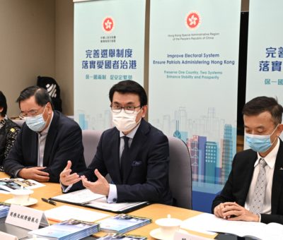 商務及經濟發展局局長邱騰華就完善香港選舉制度向香港工業總會的代表解說。 ...