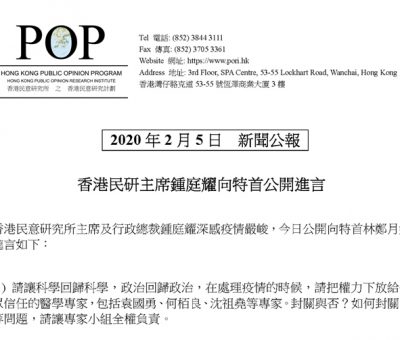 港大民意研究計劃總監鍾庭耀,致函泛民及建制派立法會議員,希望議員支持全民投票。鍾 ...