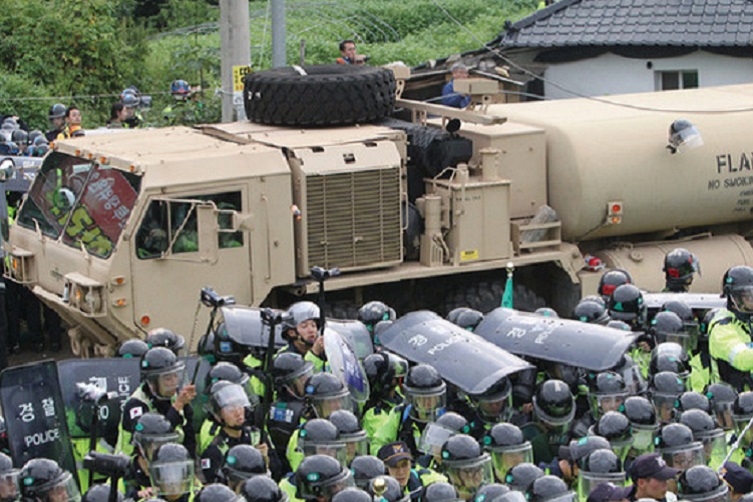 韓國韓聯社報道,駐韓美軍上午將4輛薩德攔截彈發射車運入星州基地,自薩德組件入韓到 ...