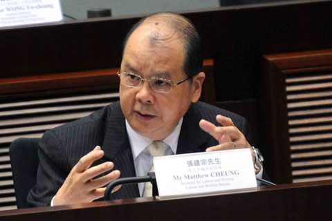 勞工及福利局局長張建宗出席香港長者協會舉辦頒獎典禮後指出,政府立場清晰,所提交議 ...