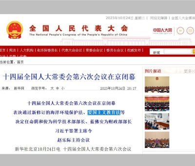 October 24, 20230686 人大常委會通過《愛國主義教育法》 特首指會全力做好對接工作 十四屆全國人大常委會第6次會議今日表決通過《中華人民共和國愛國主義教育法》,2 ... Read More