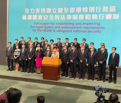 全國人大會議正審議香港維護國家安全的法律制度和執行機制,行政長官林鄭月娥聯同多 ...