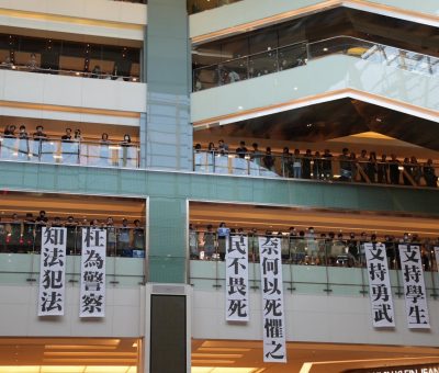 數百名市名在沙田新城市廣場集會,摺紙鶴砌出「FREE HK」字樣,並高叫口號, ...