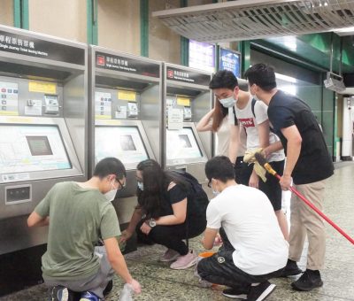 警方在星期日進入港鐵葵芳站施放催淚彈驅散示威者,早上有市民響應網上號召入站清潔 ...