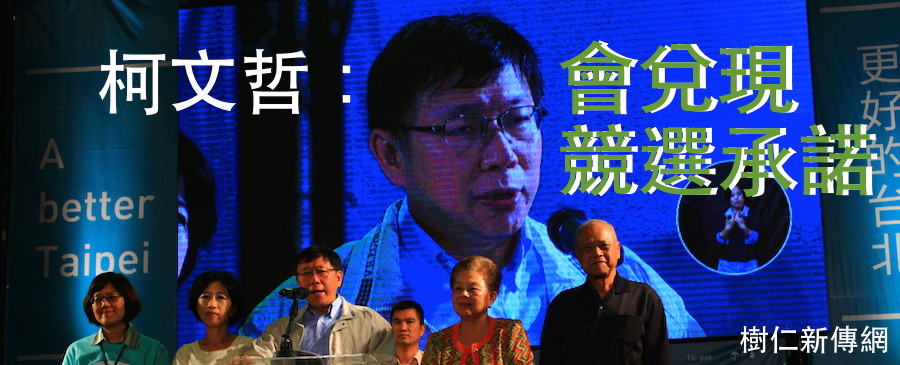 晚上七時四十分,柯文哲於競選總部宣佈成功當選新一屆台北市長,又承諾在任期內兌現競 ...