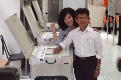 【台灣選戰_高雄直擊】台灣高雄市長今日舉行選舉,市長候選人之一的楊秋興在夫人林淑 ...