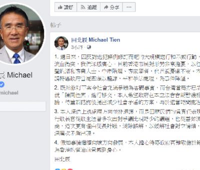 June 13, 201901890 盧偉聰:行動施放約150枚催淚彈 警拘11人涉暴動等罪 警務處長盧偉聰今午就昨日金鐘爆發的衝擊事件召開記者會,他表示在行動中,警方至今拘 ... Read More