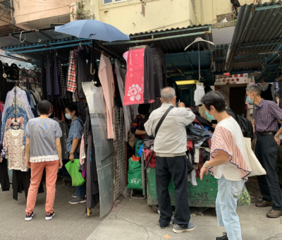 新冠肺炎疫情肆虐,深水埗的排檔仍有人流購買衣物、電器和日用品。其中,鞋檔負責人 ...