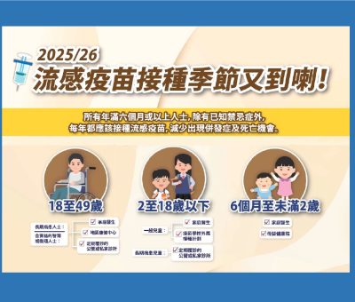 September 8, 202502354 本年度流感疫苗接種計劃月底展開 免費或資助接種擴大至18至49歲長期病患人士 衞生署衞生防護中心今日宣布,2025/26年度季節性流感疫苗接種計劃將於本月2 ... Read More
