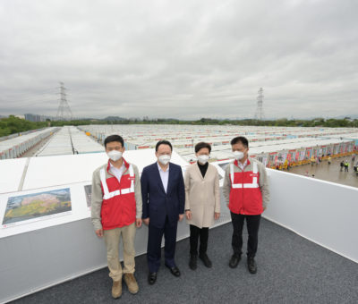 行政長官林鄭月娥到元朗視察及接收第六個由中央援建的社區隔離設施。 林鄭月 ...
