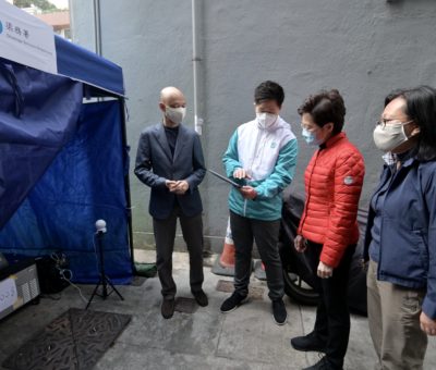 行政長官林鄭月娥聯同環境局局長黃錦星和渠務署署長彭雅妮視察新冠病毒污水監測工作 ...