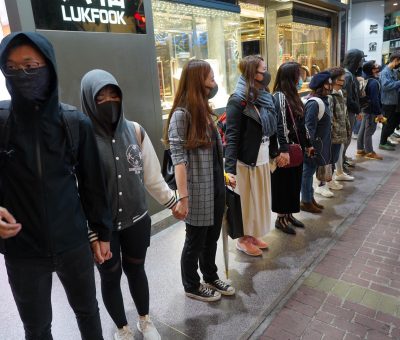 除夕夜,銅鑼灣希慎廣場對出的軒尼詩道行人路,有市民自發人鏈活動。2019.12 ...