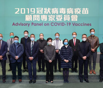 行政長官林鄭月娥(前排中)(30日)與「2019冠狀病毒病疫苗顧問專家委員會」 ...