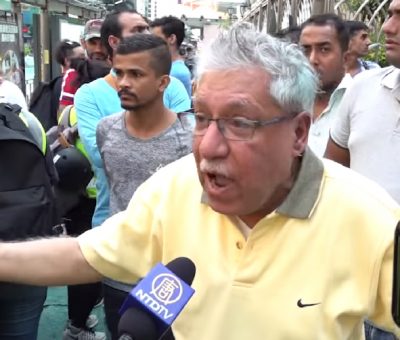 前日(20)於尖沙嘴清真寺正門外被警方水炮車藍色水劑噴中的印度協會前主席毛漢褚 ...